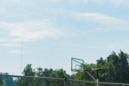 Sport playground with basketball ring on blue sky outdoors background