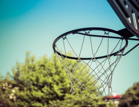 Basketball hoop on outdoor shooting target, blurred and sunlight edited background. Soft and selective focus on basketball hoop.
