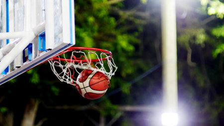 Basketball game outdoor ball right in the basket