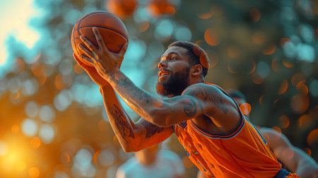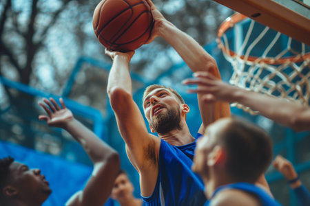 Intense focus basketball player grasping rebound, exuding determination in summer olympics sport