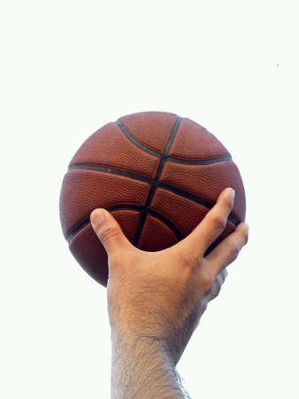 Fragment of a basketball ball in a hand of the basketball player