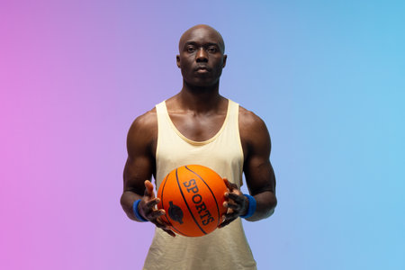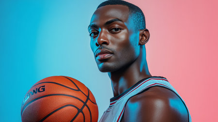 Confident Basketball Player Portrait on Colorful Background, 90s Sports Photography Style