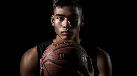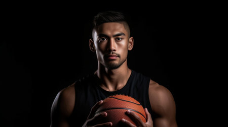 Handsome young man holding basketball ball and looking at camera : Generative AI