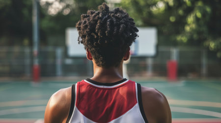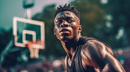 American streetball player posing for a picture on the court. GENERATE AI