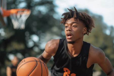 person man player basketball black professional sports ball holding leisure athlete. Generative AI.