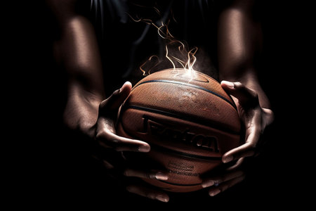 A detail of basketball player hands holding ball in energy illustration generative ai