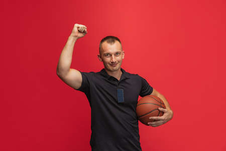 muscular man with basketball ball. sport trainer or basketball player. sport school.