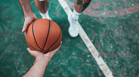 Basketball jump ball, outdoor, close-up hands. Generative AI