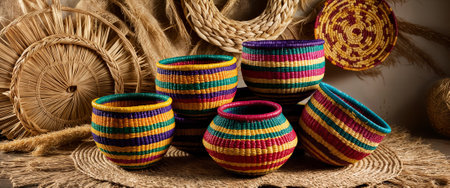 Vibrant handmade Rwandan baskets showcasing traditional craftsmanship and supporting fair trade principles