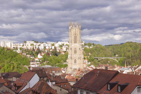 Basel, Switzerland - March 02, 2009: View to the Basel city from Munster tower on a rainy day in Basel, Switzerland.