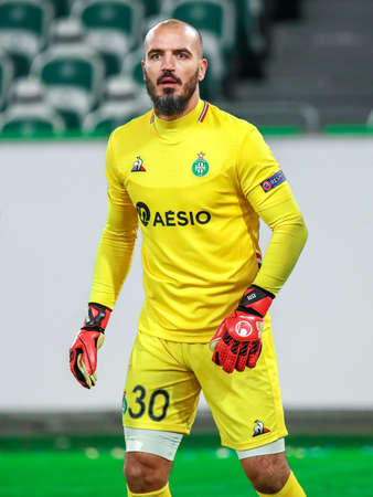 Wolfsburg, Germany, December 12, 2019: Goalkeeper Jessy Moulin of AS Saint-Etienne during the UEFA Europa League match between VfL Wolfsburg and AS Saint-Etienne at Volkswagen Arena in Wolfsburg