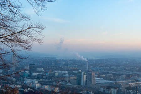 Zurich, Switzerland - December 28th 2018: Amazing sunset view over the city