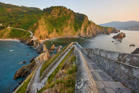 Sunset dramatic coastline in Spain. San Juan de Gaztelugatxe chapel