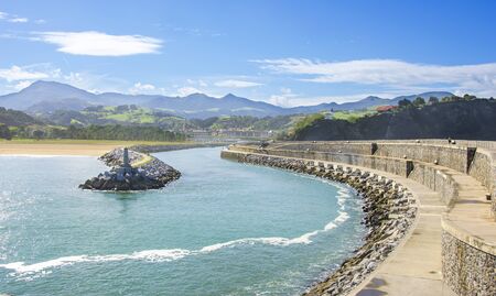 View of Zumaia breakwater on a sunny day in Guipúzcoa,spain