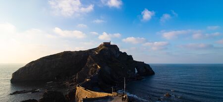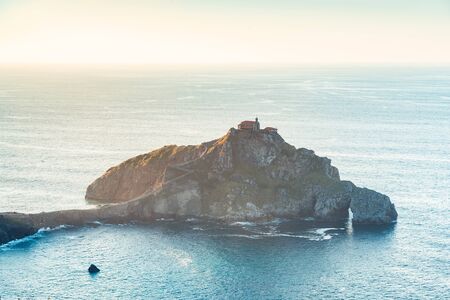 Bermeo, Spain - Octobre 24, 2018. The island of Gaztelugache photographed from the mainland during sunset.