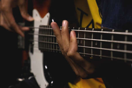 Electric guitar player playing hard rock music with bass guitar