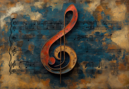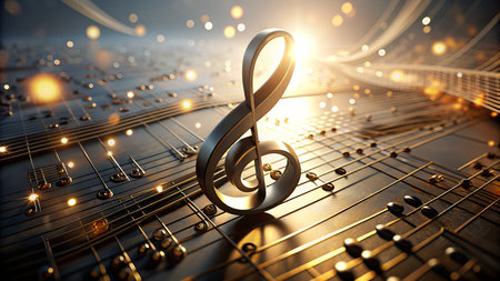 A beautiful and nostalgic image of a treble clef stave with musical notes, evoking the feeling of a classic symphony. . Generative AI.