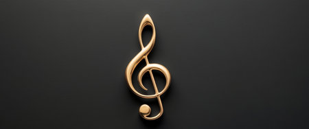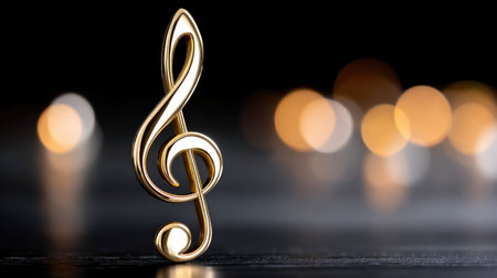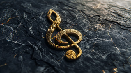 golden treble clef rests elegantly on a black marble surface, creating a striking contrast of light and shadow.