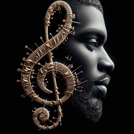 Digital 3D Illustration of a Man's Face with Treble Clef
