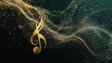 A beautiful abstract design featuring a golden music note surrounded by shimmering sparkles, evoking themes of music, elegance, and creativity.