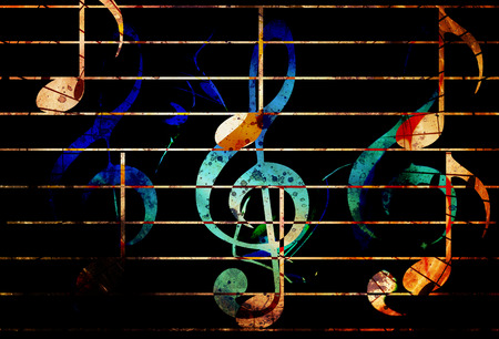 On a background paper, abstractly represented musical notes create a vibrant and colorful composition.
