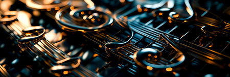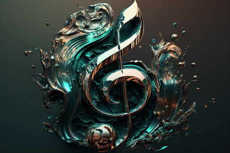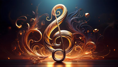 This stunning image features a golden treble clef intertwined with musical notes, showcasing a modern and elegant artistic design. Perfect for music-related projects.