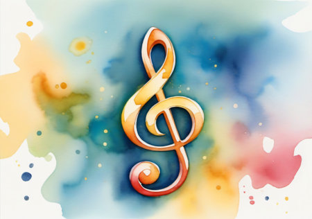 Elegant Treble Clef Music Symbol with Vibrant Music Vibes
