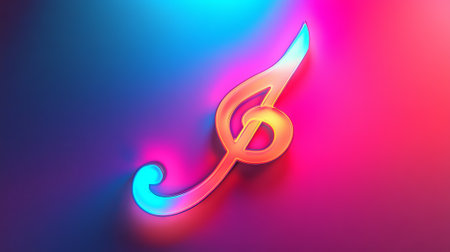Futuristic Neon Treble Clef Symbol on Vibrant Gradient Background. Concept of Music Icon, Glowing Musical Note, Sound Waves, Modern Design, Digital Art, Abstract Light Effect.