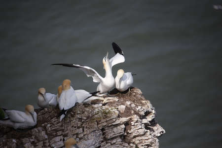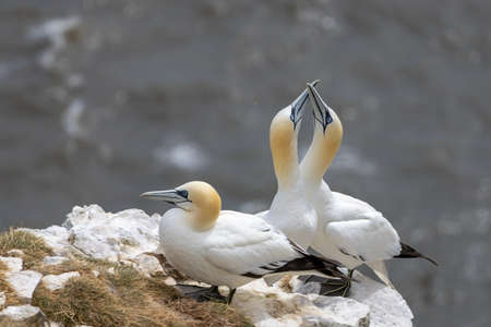 Gannets preparing for their breeding season on the cliffs