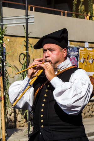 Nuoro, Sardinia, Italy - August 26 2018: Musicians in the parade of traditional costumes of Sardinia on the occasion of the Feast of the Redeemer of the August 26, 2018 in Nuoro, Sardinia.