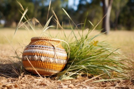 close-up of a colorful woven african basket for kwanzaa, created with generative ai