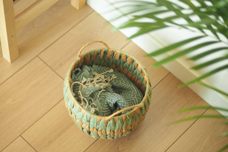 Woven wicker basket, rustic decoration for home interior design generated by artificial intelligence