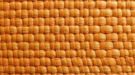 Close-up of sunlit woven straw mat texture in natural light. That the image is generated using AI.