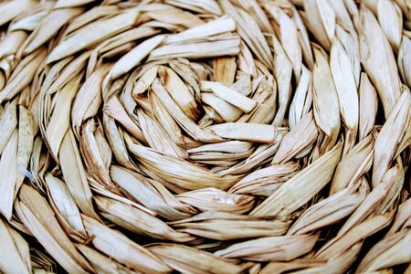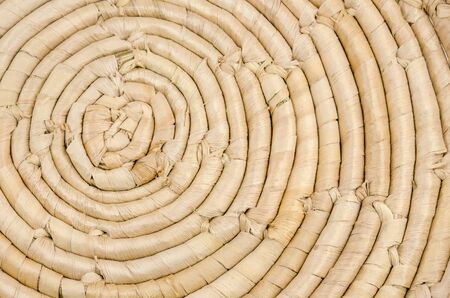 Straw wicker abstract background, straw wicker beige eco friendly spiral abstract background space