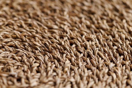 This image features a close-up view of natural braided material, highlighting its intricate patterns and beautiful textures ideal for interior design projects.