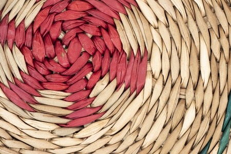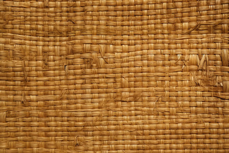 Detailed macro shot of a woven brown rattan texture forming a circular pattern Clear details and vibrant color...