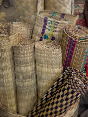 Close-up of woven bamboo matting, highlighting traditional crafting techniques and natural materials
