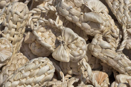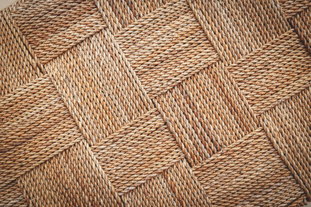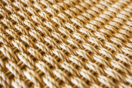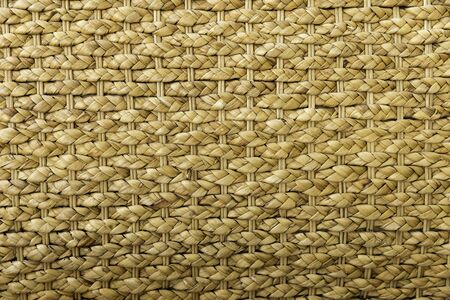 Close up photo of surface made of woven straw. Natural material for furniture and interior.