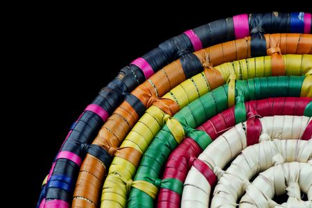 Close-up of curvy bamboo strips weaving seamed by sput of a hand-made hat