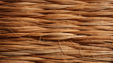Close up reed thatch cross section tightly bundled straw wallpaper background representing natural fiber detail suitable for rustic organic design