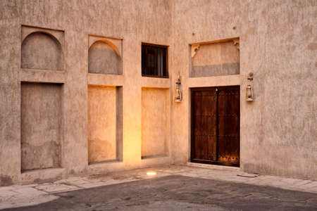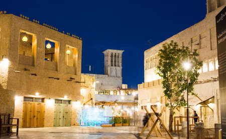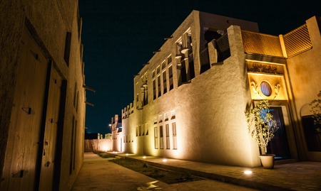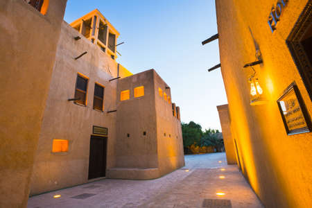 DUBAI, UNITED ARAB EMIRATES - JANUARY 30, 2018: Al Fahidi Historical neighborhood at dusk, a historic district in Dubai, United Arab Emirates (UAE)