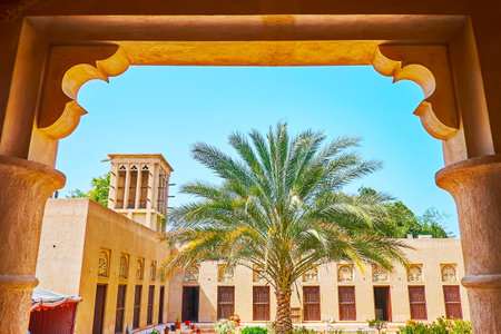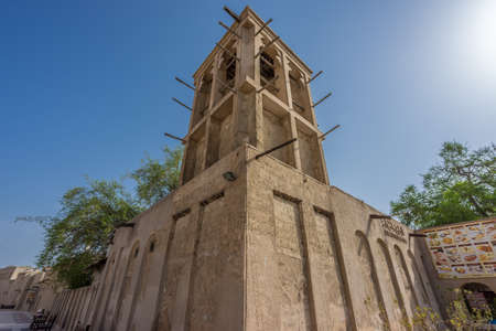 Dubai, United Arab Emirates, February 23, 2018, the Al Fahidi Historical and Dubai Old Souq Neighbourhood, one of the oldest part of city and perfect tourist attraction from the mid 19th century.
