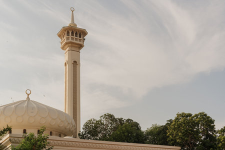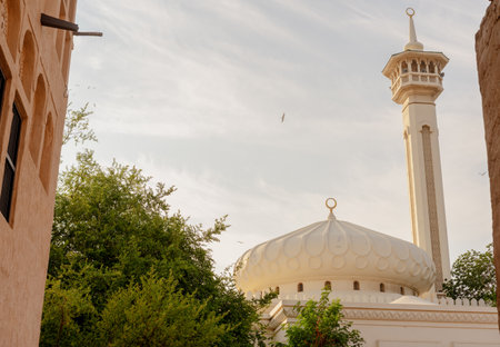 Dubai, United Arab Emirates, Middles East - December, 24, 2023 - The Al Farooq Mosque as backdrop seen from Al Fahidi historic neighbourhood