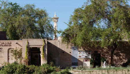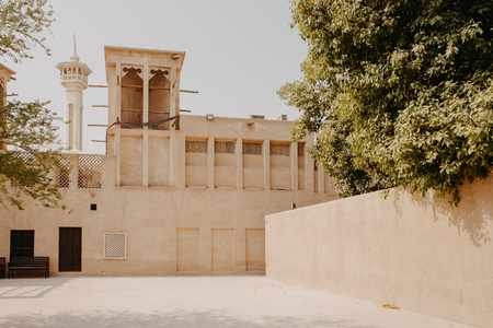 View of the mosque in historical Al Fahidi district, Al Bastakiya. Dubai, United Arab Emirates
