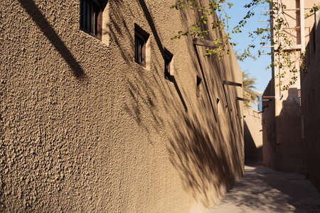 Old Dubai. Traditional Arabic streets in historical Al Fahidi district, Al Bastakiya. Dubai, United Arab Emirates. Heritage building of history museum