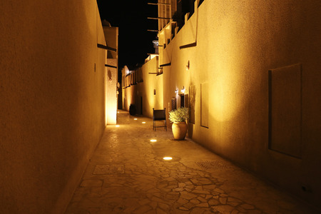 Traditional Arabic street in historical Al Fahidi district, Al Bastakiya. Dubai, United Arab Emirates