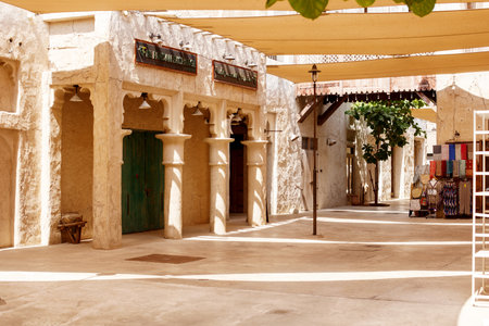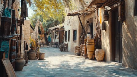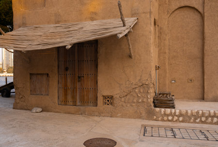 Dubai heritage village with traditional houses and artifacts. Copy space