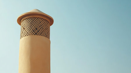 Traditional Emirati wind tower against a clear sky, ample copy space