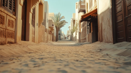 Historic Al Fahidi neighborhood with sand pathways. Copy space