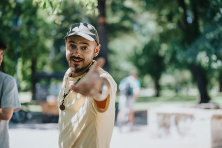 Young man enjoying a sunny day in the park with friends